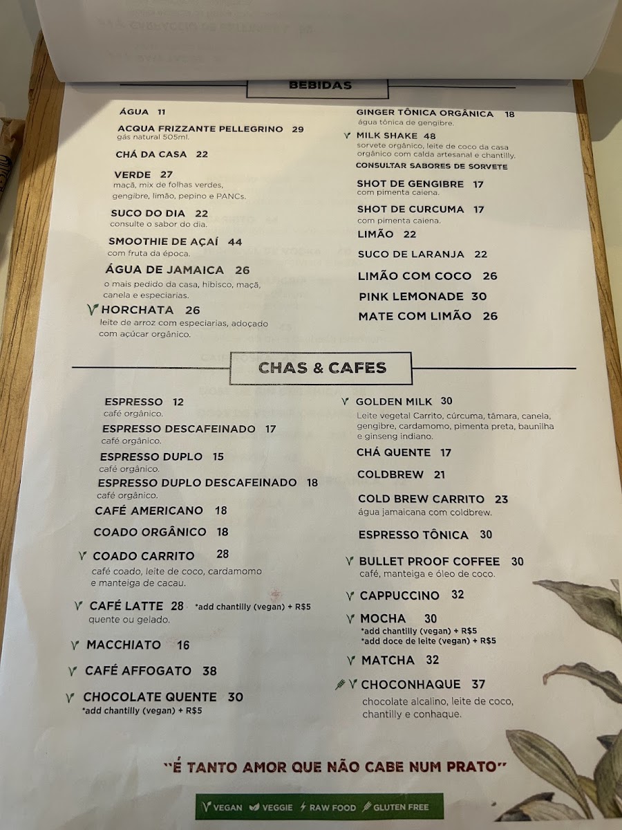 For something heartier, their Novidades section includes the Sopa De Tortilla, a warm and comforting dish. The Especial da Chef Camila Borba presents unique creations such as Canelone De Abobrinha and the Huevo Rancheiro, which will surely delight any fan of creative vegan cuisine.