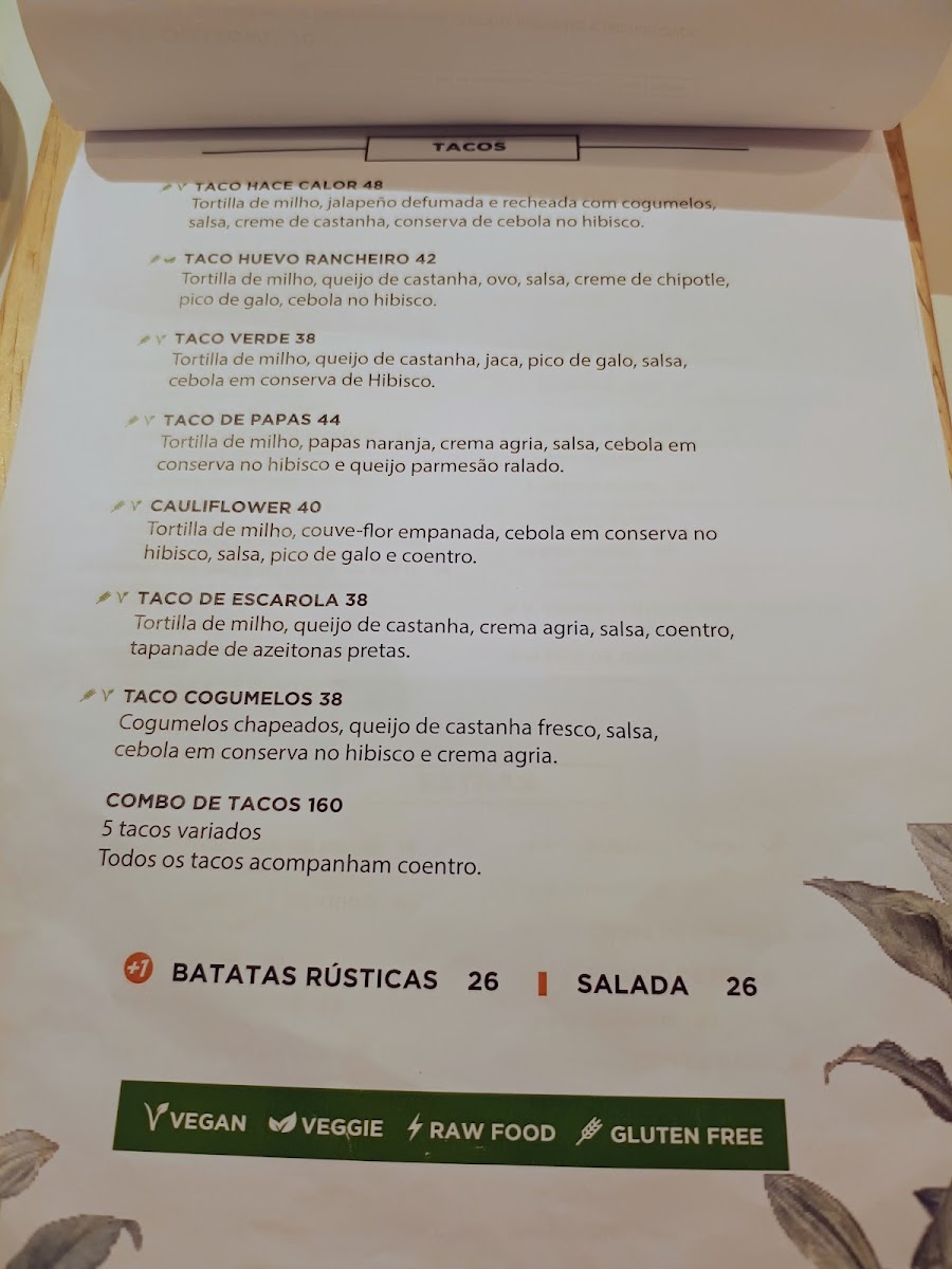 Starting with Entradas (starters), the menu offers a variety of creative and flavorful options such as Nachos Supreme Plant Based and Mexican Street Corn Vegano-Gluten Free, which cater to vegan and gluten-free diets. For something more savory, try the Porção De Coxinhas Vegana, or indulge in the crispy Falafel Vegano-Gluten Free. The Tacos Lovers Vegano is another highlight, offering five plant-based tacos that are both satisfying and packed with flavor.