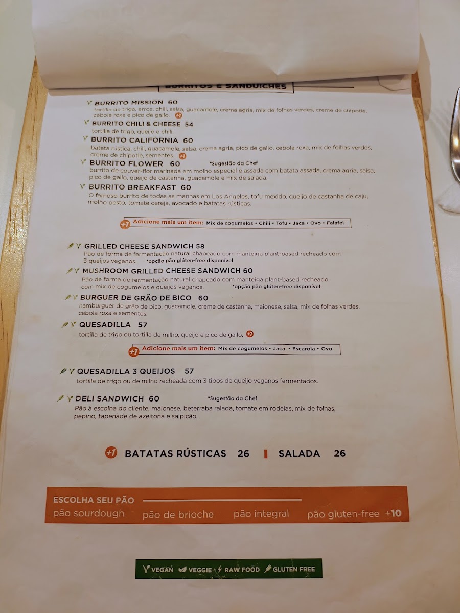 For those craving more substantial meals, the The Specials menu offers exciting dishes like the Lasanha De Abobrinha Vegana-Gluten Free and the Russian Bowl-Strogonoff Vegano-Organic, perfect for a filling yet healthy lunch or dinner. The Flower Burrito Vegano and Deli Sandwich Vegan Organic are fantastic choices for a lighter, but equally satisfying, meal.